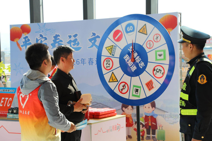 “这互动环节既能让大家了解交通安全知识,又能收到一份实用的应急工具,我觉得很有意义。”带着家人返乡过年的王先生称赞道。